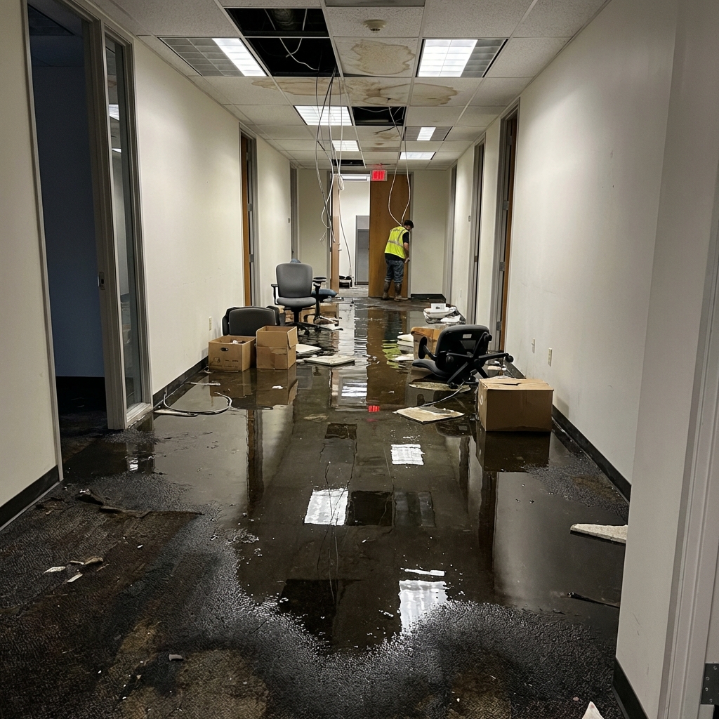 Emergency repairs often require a multi-disciplinary approach. A flooded office isn't just a plumbing issue; it's an electrical issue (wet wiring), a building issue (damaged drywall), and a flooring issue.